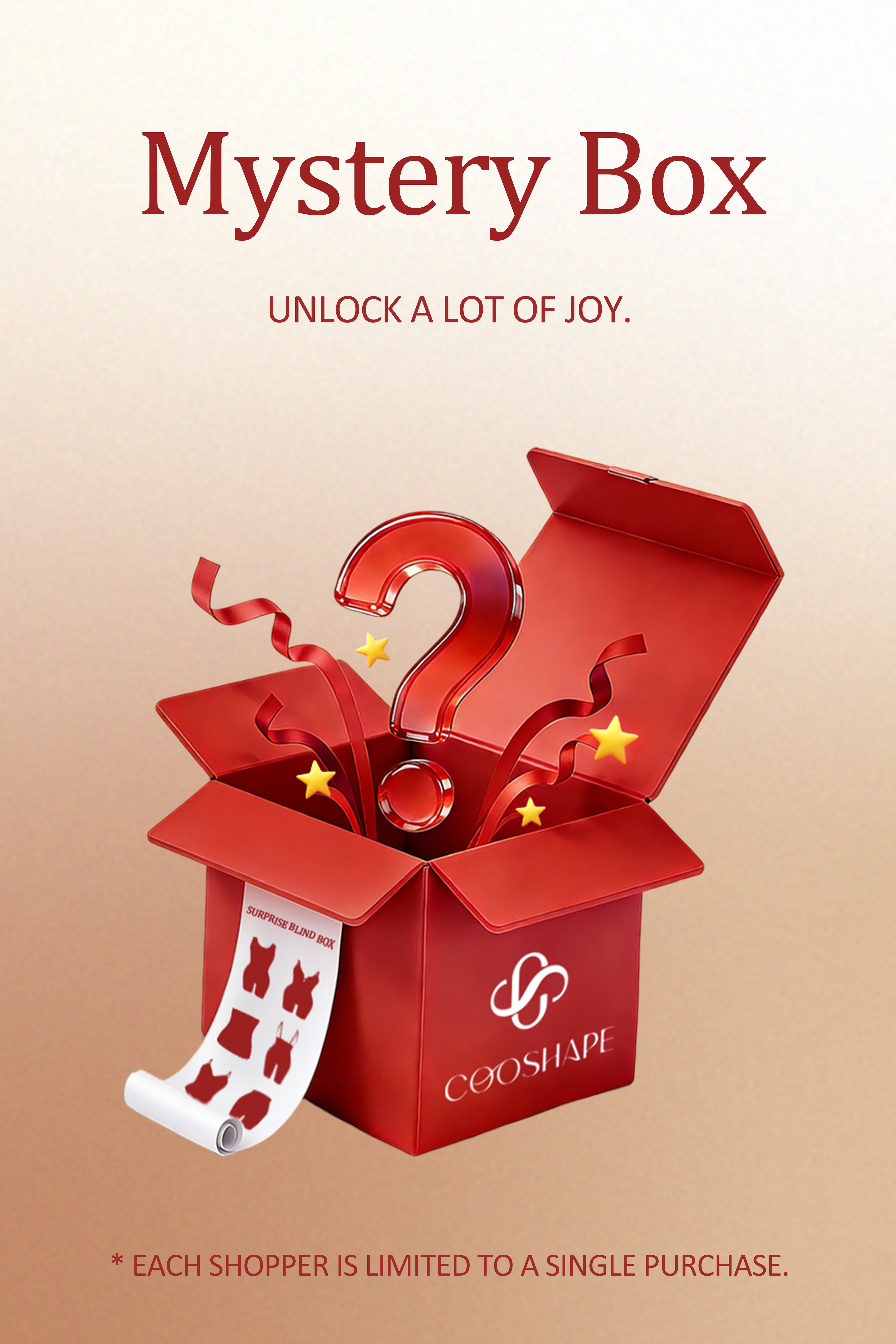 • Each mystery box includes one random item: shapewear, bodysuit, shorts, bra, or panties.