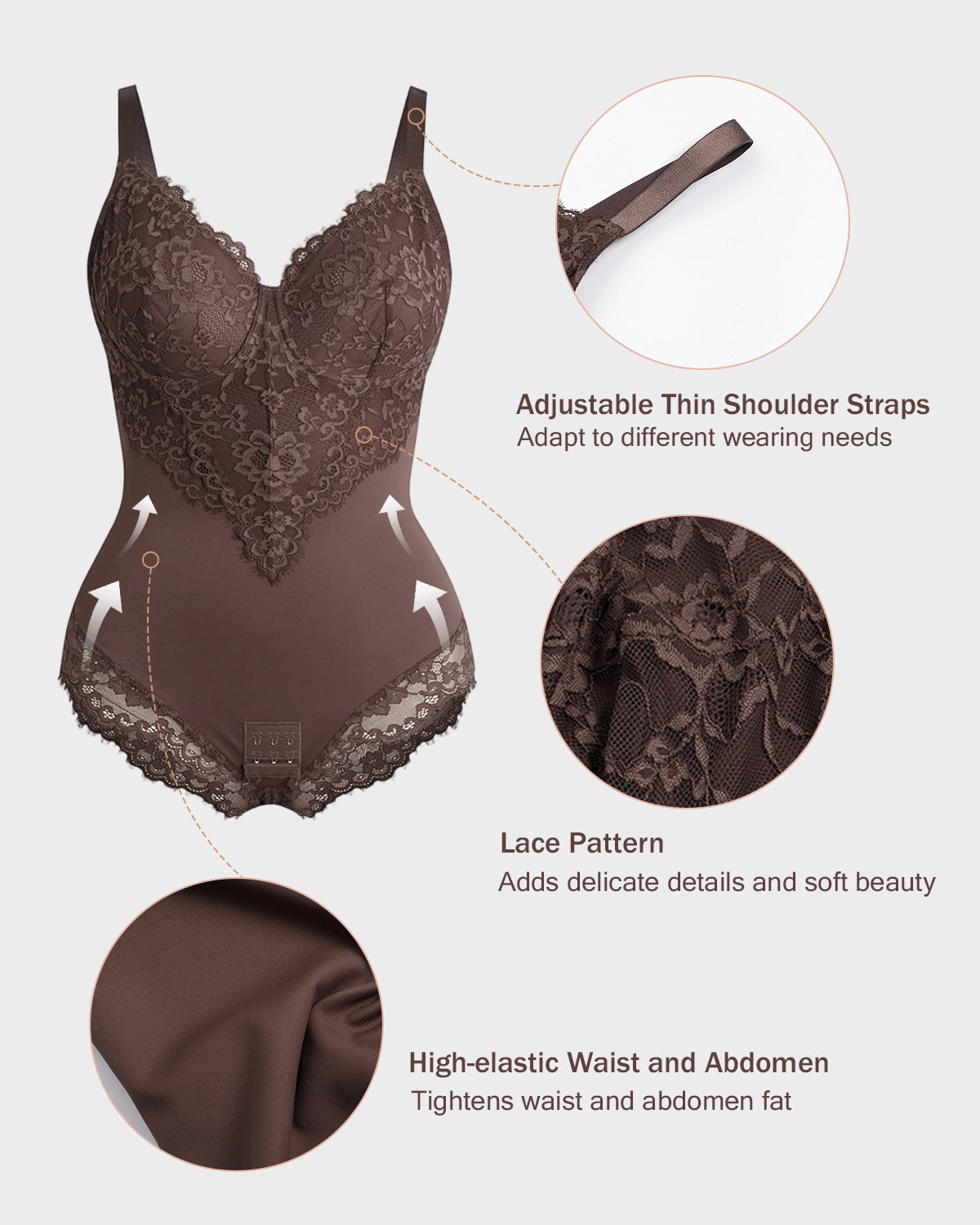 - Adjustable Thin Shoulder Straps - Allow for flexible length adjustment to suit different wearing needs.