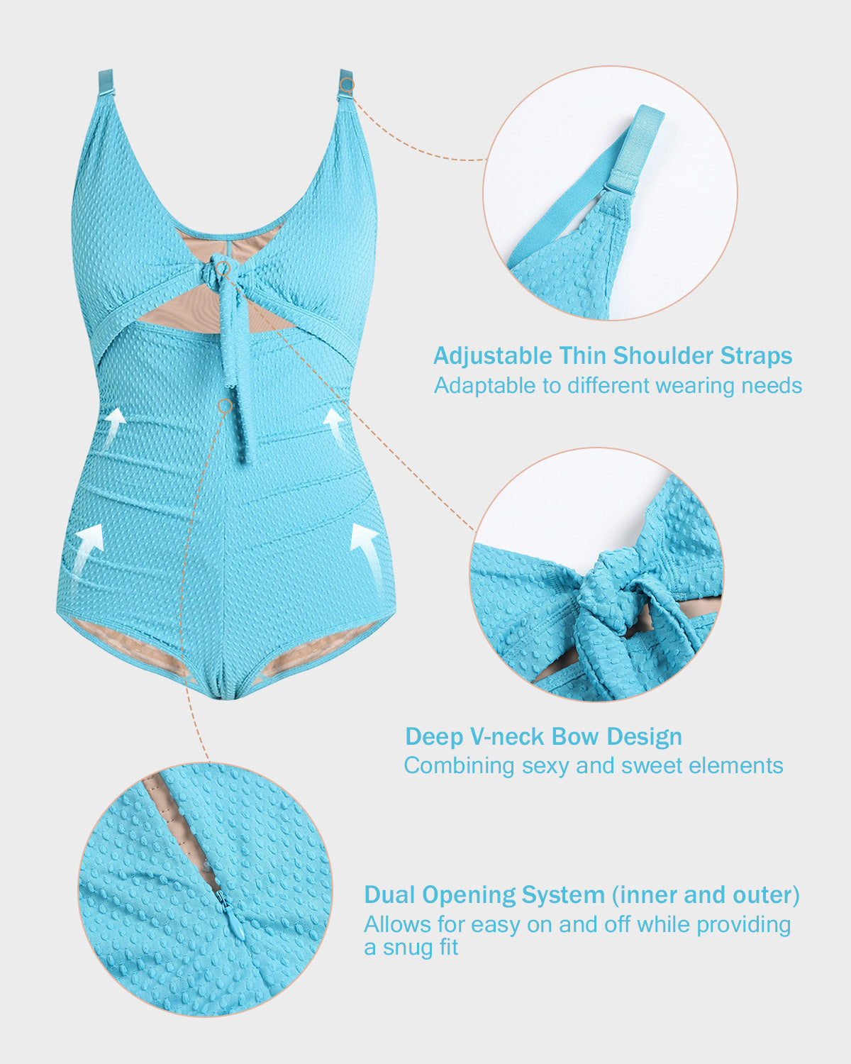 - Deep V-neck Bow Design - A deep V-neck with bow embellishment at the front flatters the neck and shoulders, combining sexiness and sweetness.
