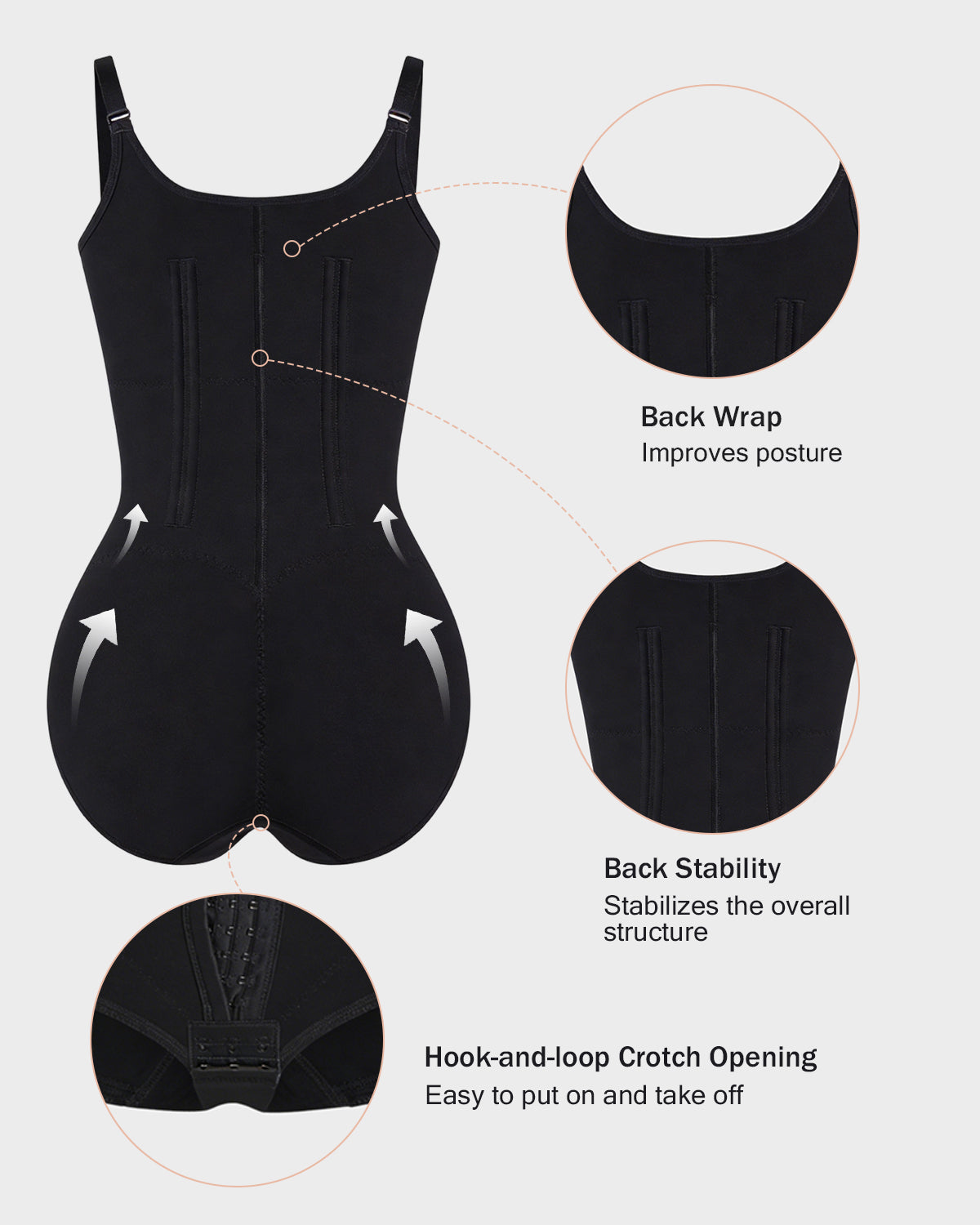 •Back Support - Slims back fat and improves posture.