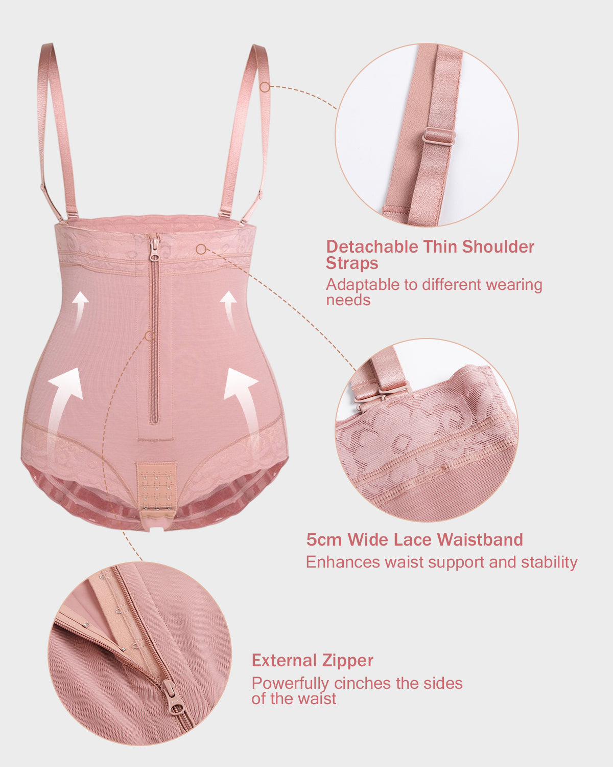- External Zipper - Strongly tightens the side waist, creating a charming hourglass figure.