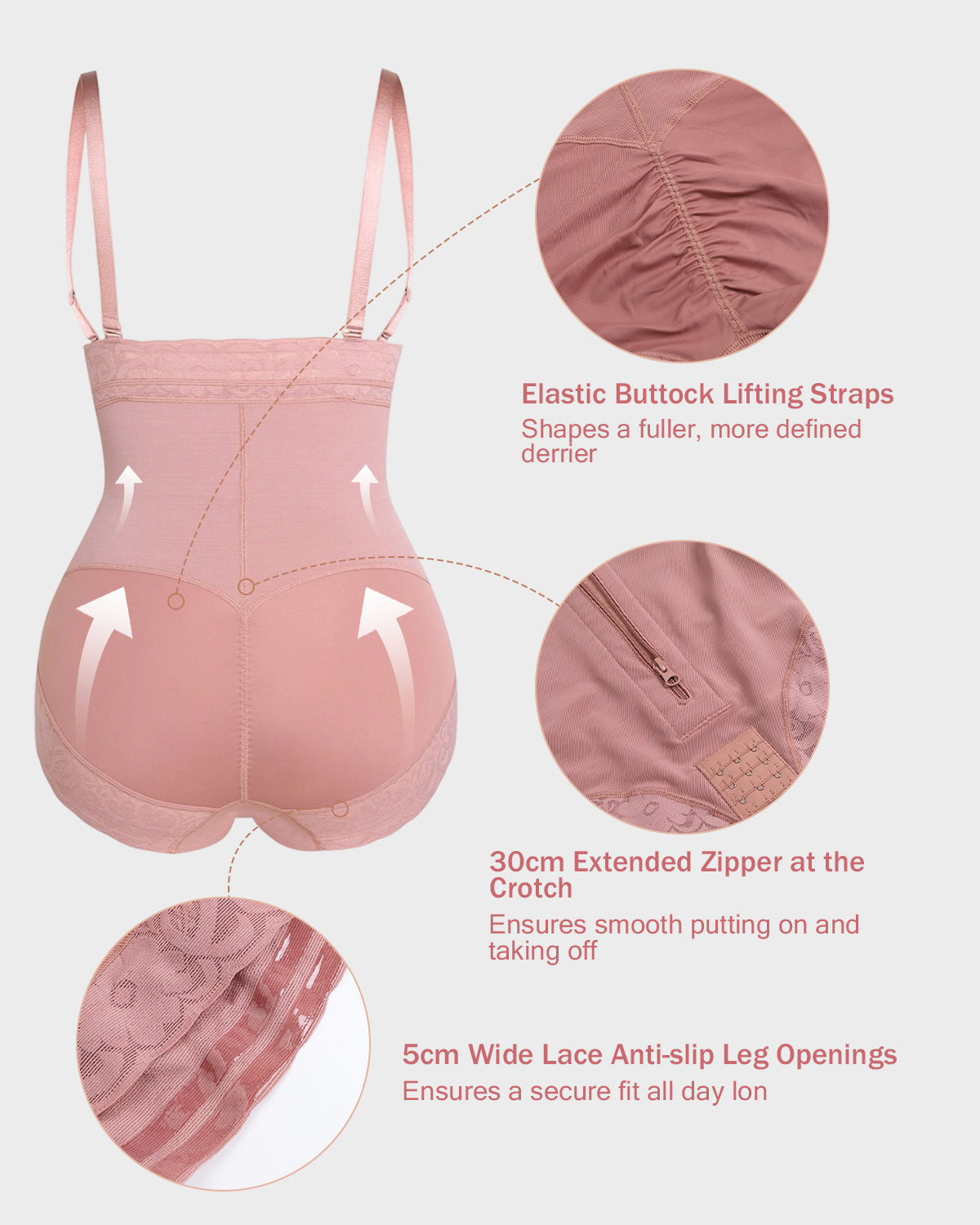 - 30cm Extended Zipper at the Crotch - Ensures smooth on and off and enhances hip support.