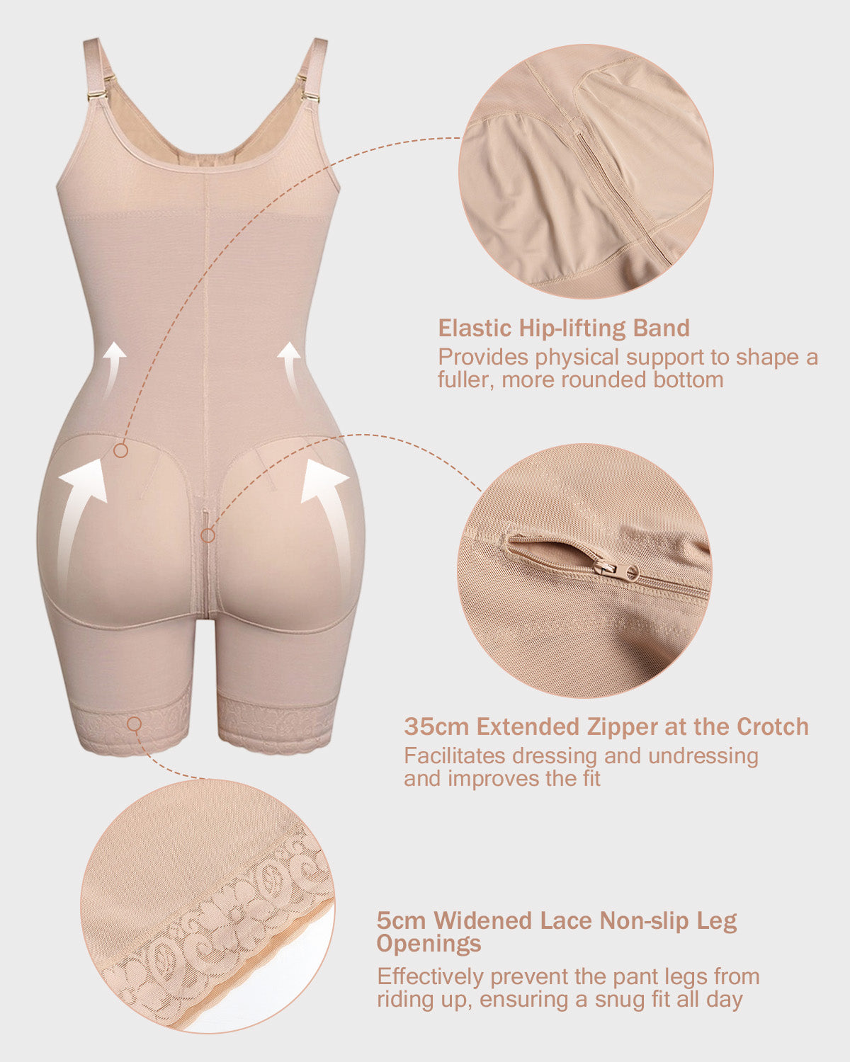 - Elastic Hip-lifting Band - Provides physical support to shape a fuller, more rounded bottom.